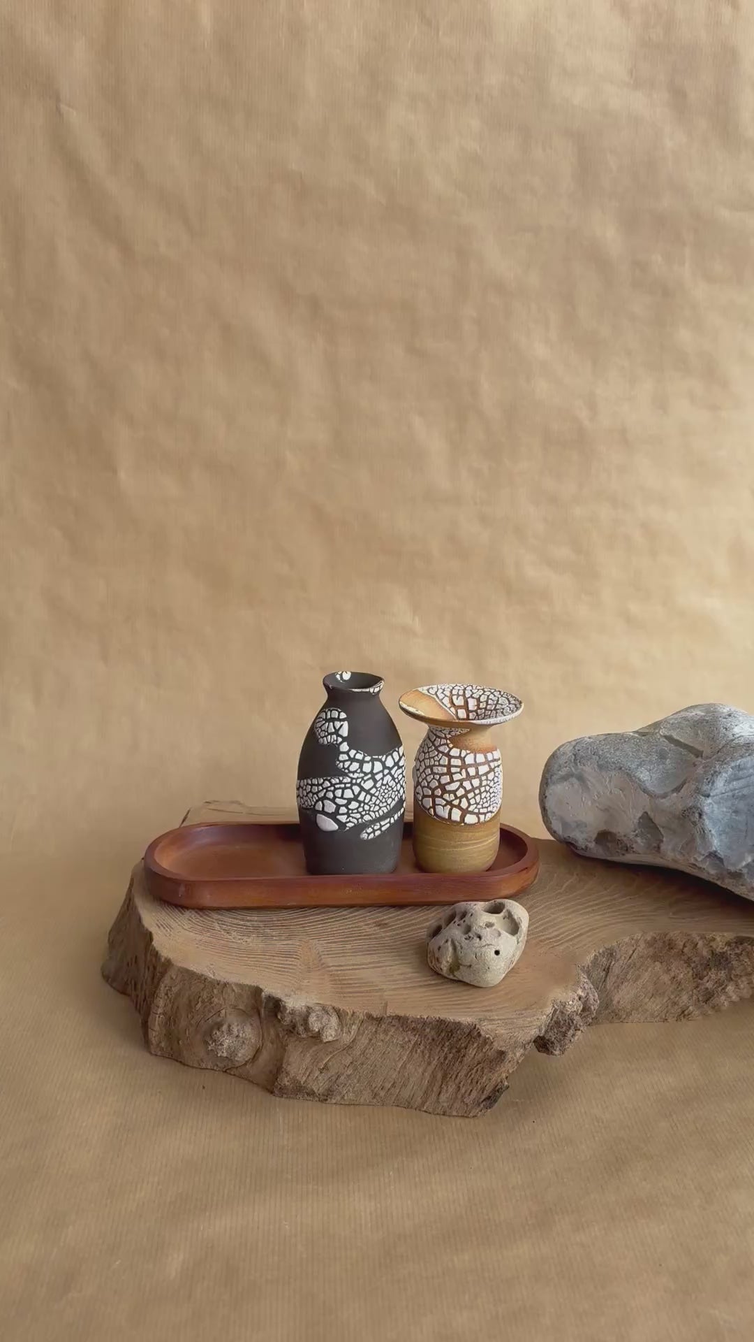 They say three is a magic number… and there’s certainly a little spirit in our bud vase trios! Each vessel is wheel thrown, and nestled in a hand carved wooden base. All mindfully made in Manchester.