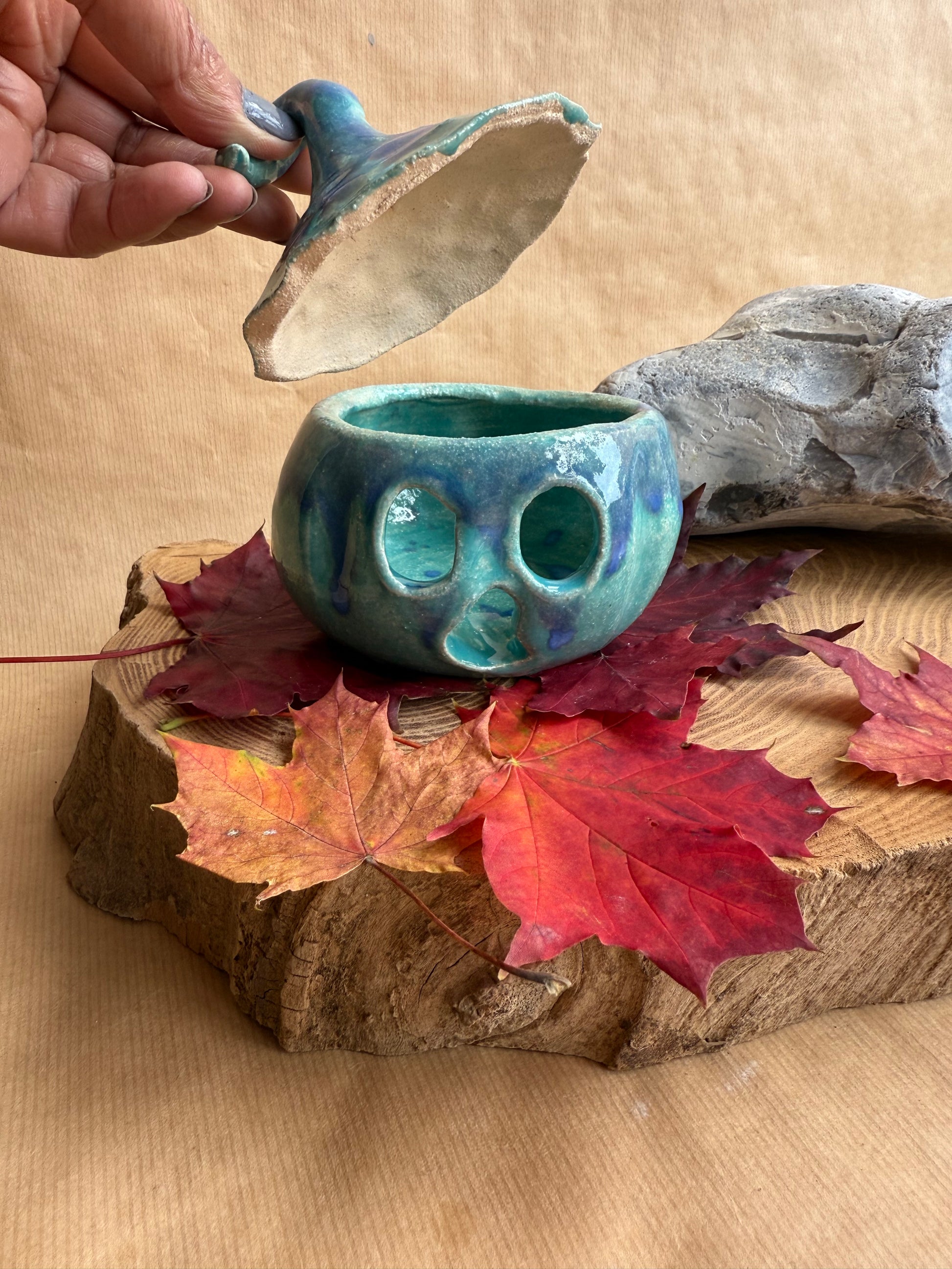 We have designed these little wheel-thrown ghouls to help you celebrate Halloween more sustainably. Light an incense cone or candle, and watch them come to life! 🎃🦇