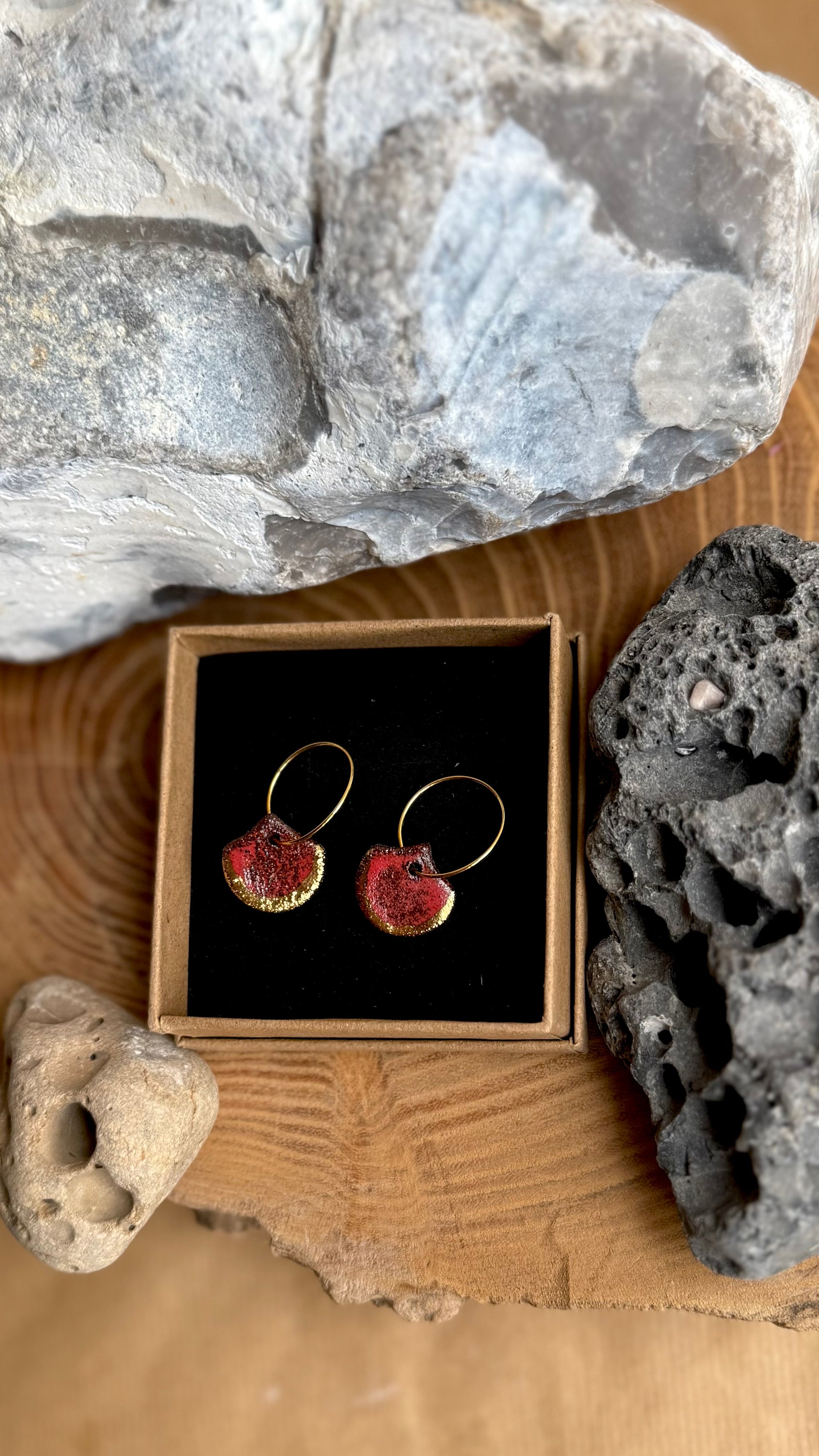 This beautiful pair of scale earrings is handmade from black stoneware clay. Each pair is unique, with hand-painted 22 Karat Gold detail. 100% made in Greater Manchester, and complete with 22K Gold Plated hoops with a hook and loop fastener. Our hoops are nickel and lead free for your comfort, the approximate weight of these earrings with the hoops is 2 grams so they are very light!