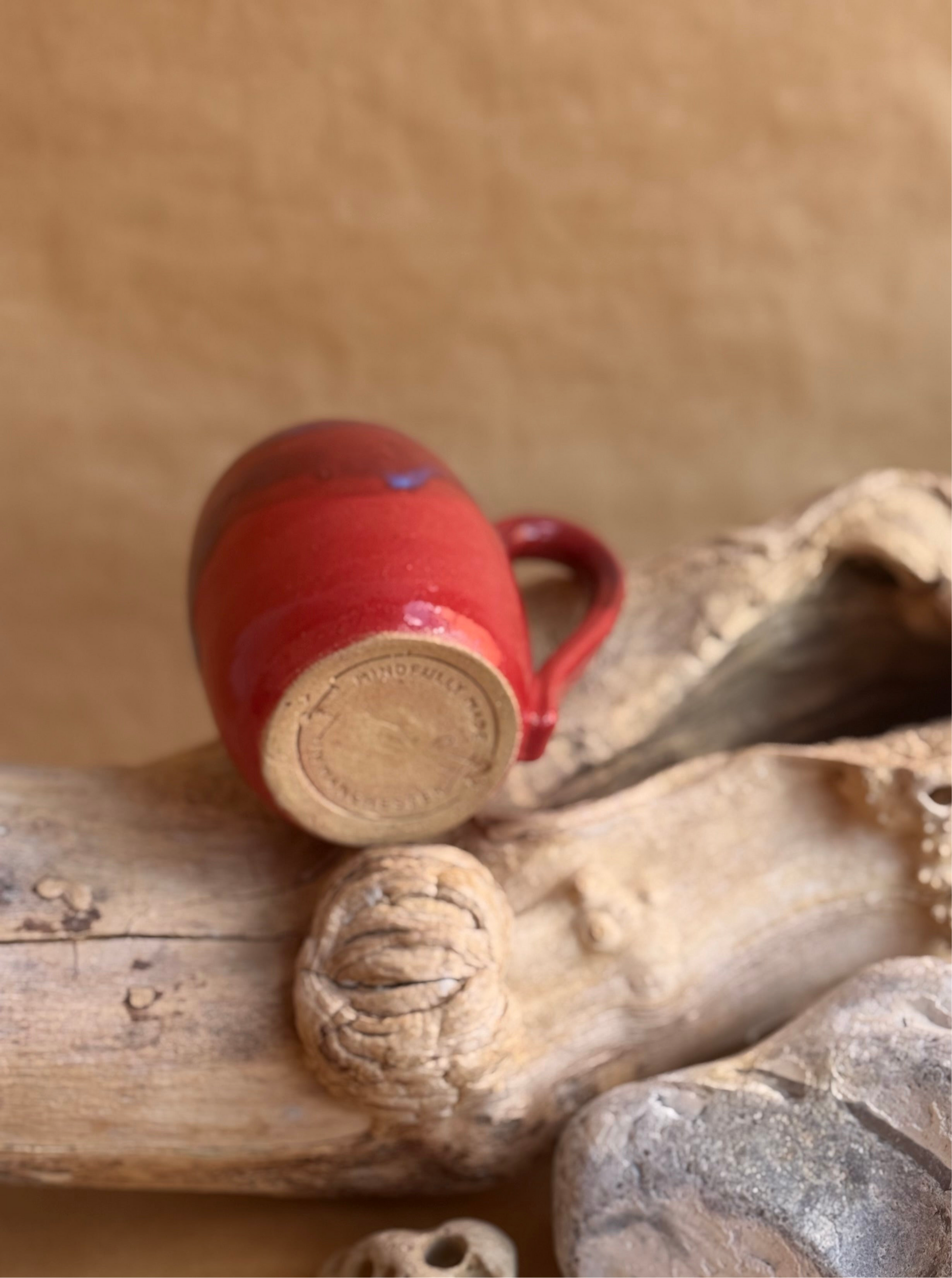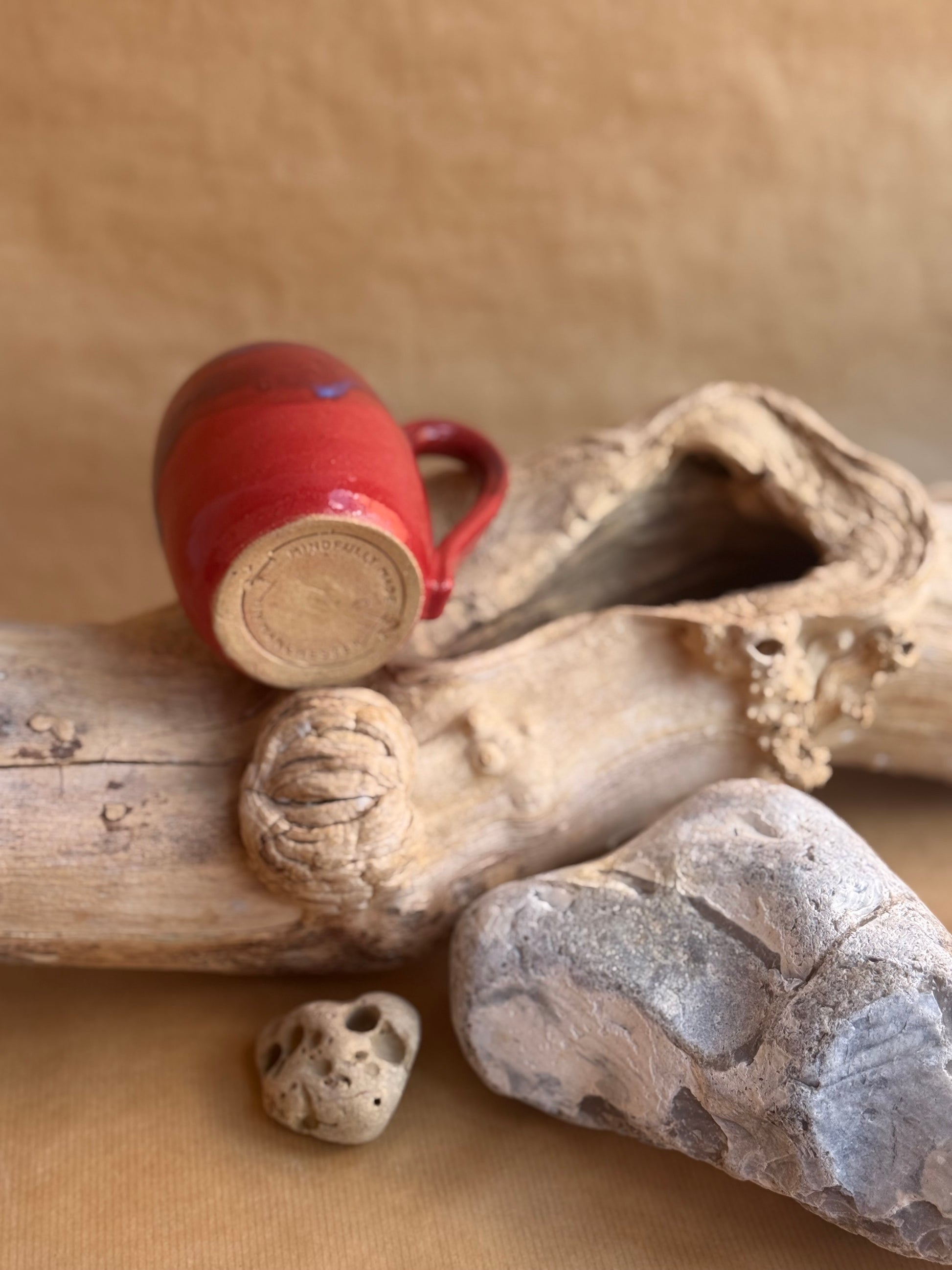 Our Imprints of Earth mugs are pure comfort in a cup! This mug has been glazed in playful strawberry hues, perfect for those brews. This piece is completely unique, and handmade on a potter's wheel. A beautiful spirited gift or perfect for home, mindfully made in Manchester.